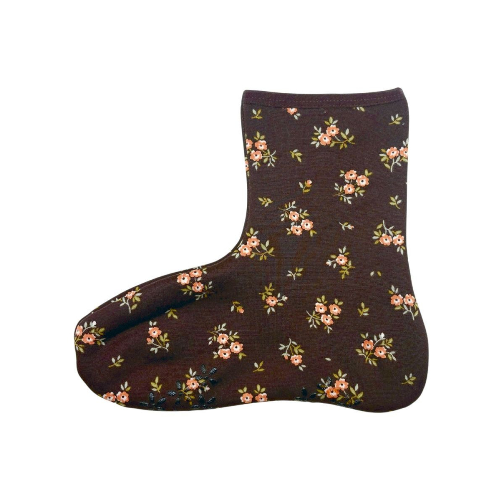 日本 Poka 保暖襪-咖啡小花 短襪 裏起毛 襪套 室內拖鞋 防滑鞋底 襪子 地板襪【恩恩選物】