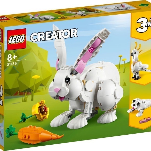 • 3 合 1 玩具-動物愛好者可用樂高® 創意百變系列 3 合 1 白兔(31133)盒組享受無盡的創意樂趣,內有 3 合 1 玩具模型:白兔、鳳頭鸚鵡與白海豹