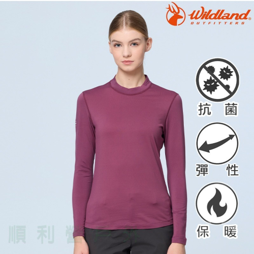 荒野WILDLAND 女款輕能量纖維親膚立領保暖衣 W2677 梅洛色 衛生衣 抗菌 保暖 OUTDOOR NICE