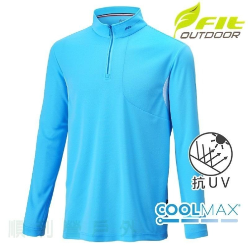 維特FIT 男款COOLMAX 立領長袖上衣 ZS1102 水藍色 排汗衣 長袖防曬衣 OUTDOOR NICE