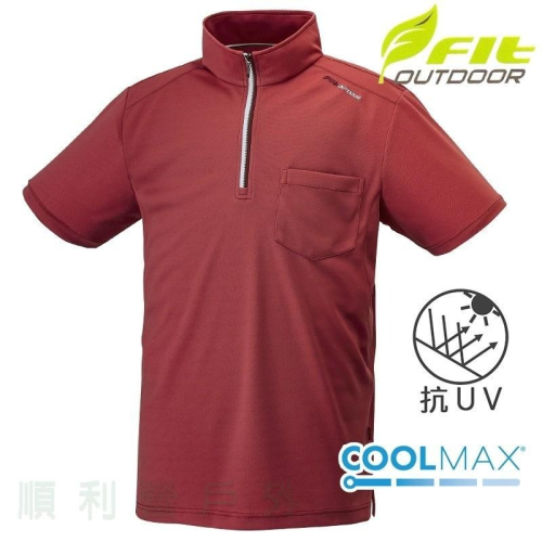 維特FIT 男款COOLMAX 立領短袖口袋上衣 ZS1108 焦糖色 排汗衣 運動休閒服 OUTDOOR NICE