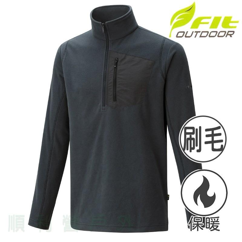 維特FIT 男款雙刷雙搖保暖上衣 PW1102 鐵礦灰 保暖舒適 中層衣 刷毛衣 OUTDOOR NICE