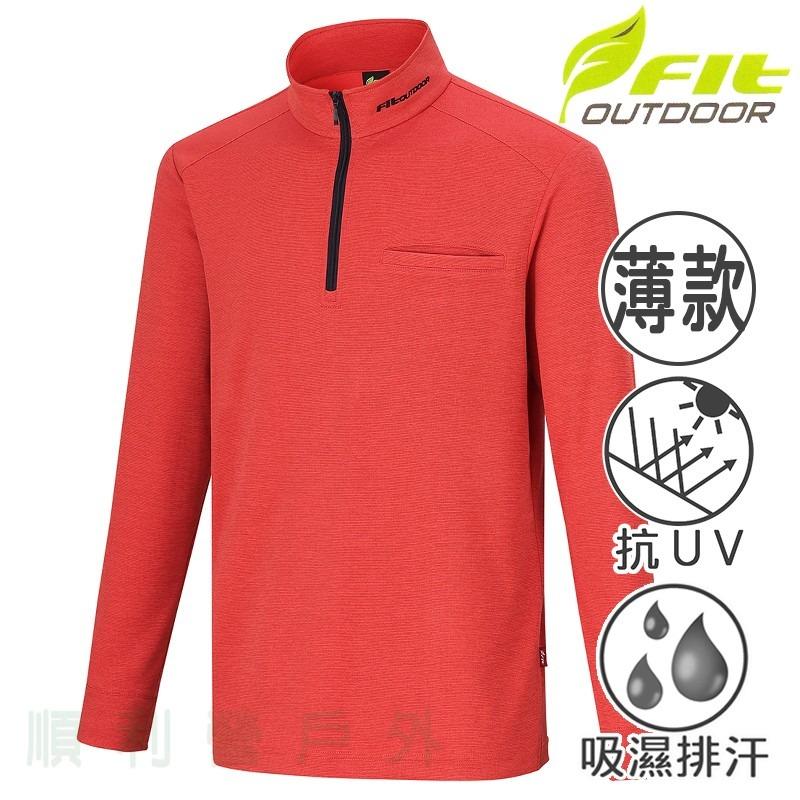 維特FIT 男款吸濕排汗抗UV麻花立領上衣 PW1104 寶石紅 休閒服 排汗衣 薄長袖上衣 OUTDOOR NICE