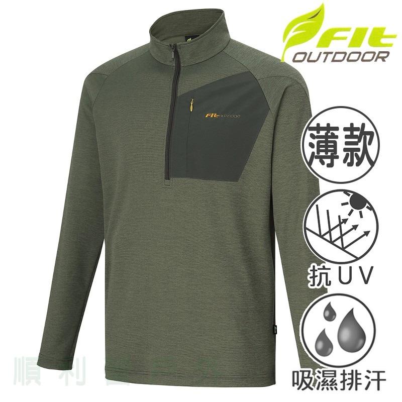 維特FIT 男款吸濕排汗抗UV麻花立領上衣 PW1105 橄欖綠 休閒服 排汗衣 薄長袖上衣 OUTDOOR NICE