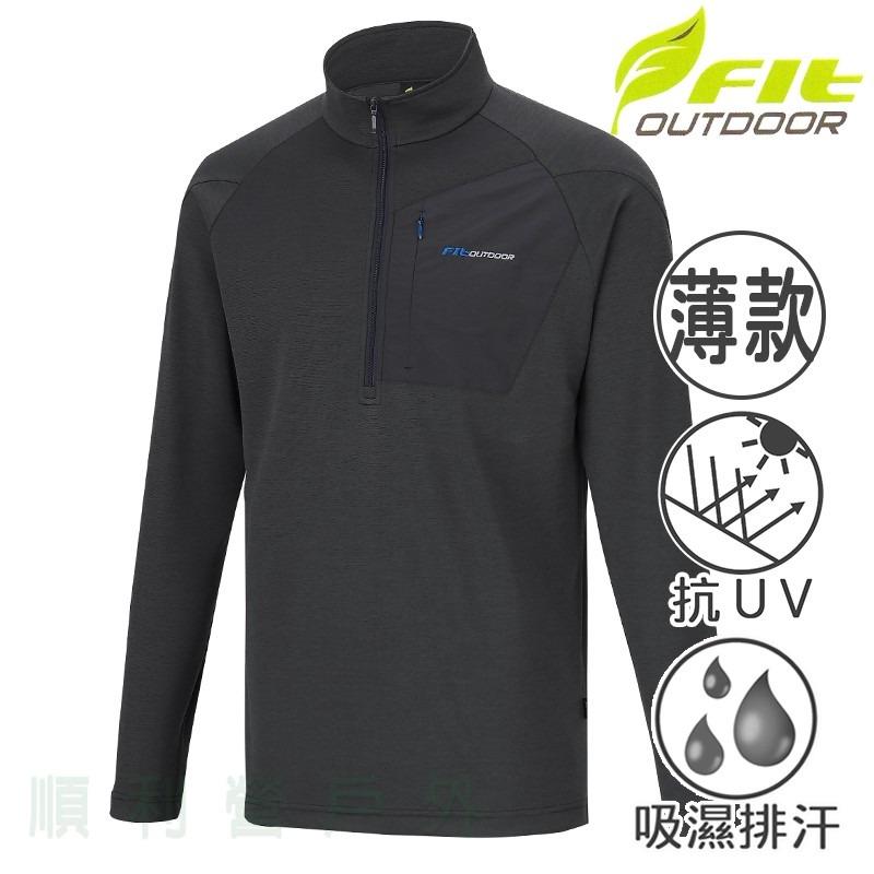 維特FIT 男款吸濕排汗抗UV麻花立領上衣 PW1105 鐵礦灰 休閒服 排汗衣 薄長袖上衣 OUTDOOR NICE