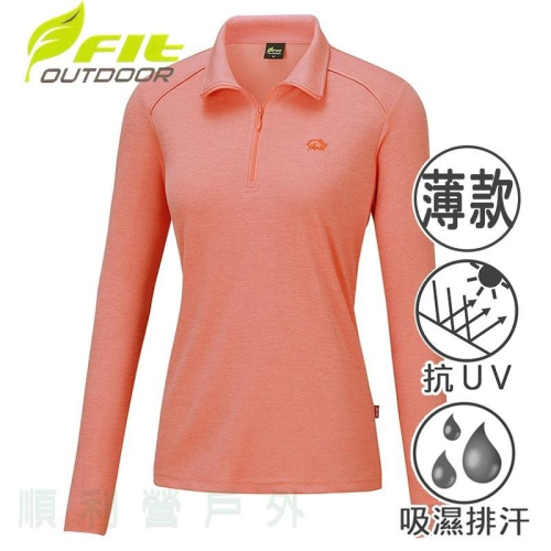 維特FIT 女款遠紅外線吸濕排汗抗UV麻花立領上衣 QW2102 橘紅色 運動服 排汗衣 OUTDOOR NICE