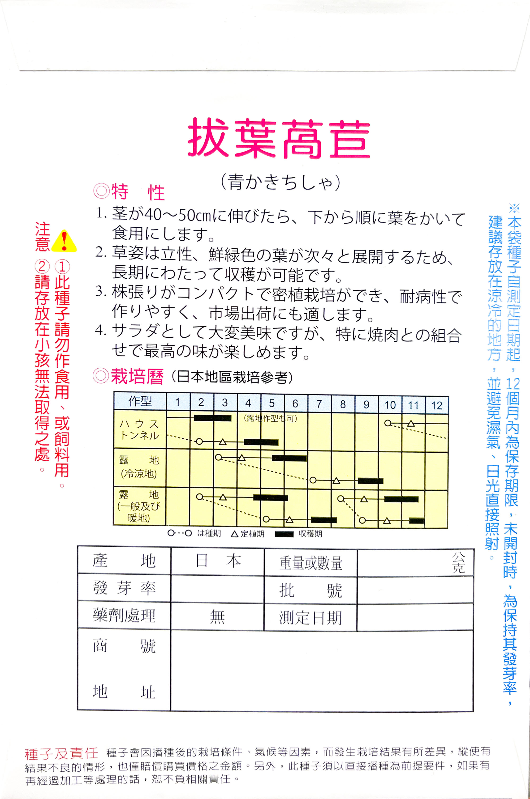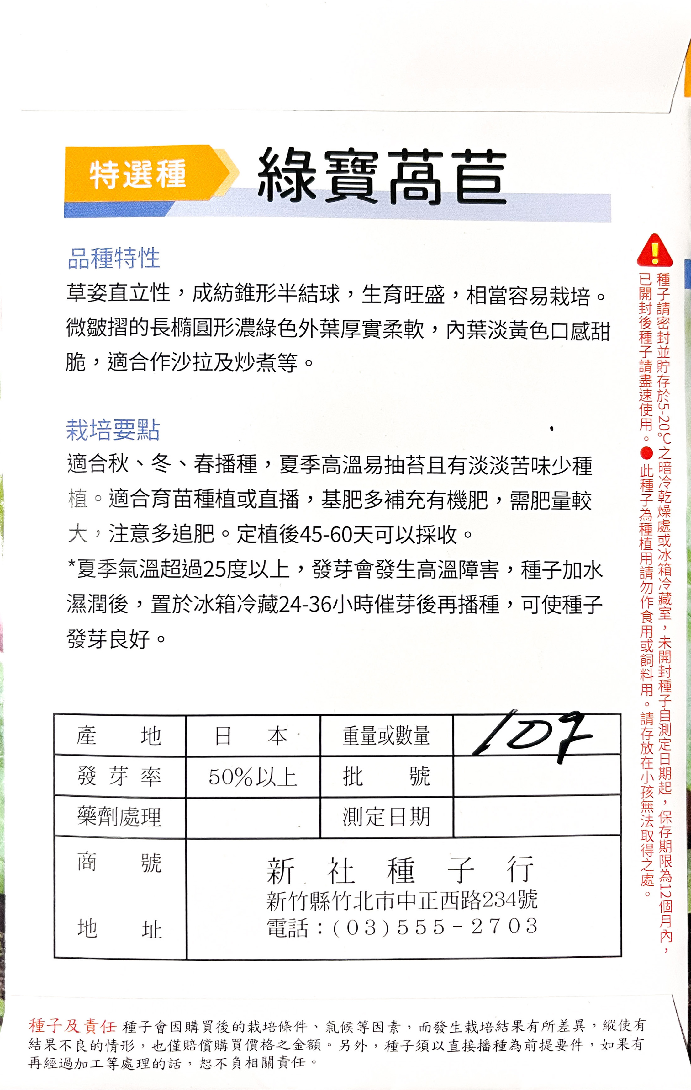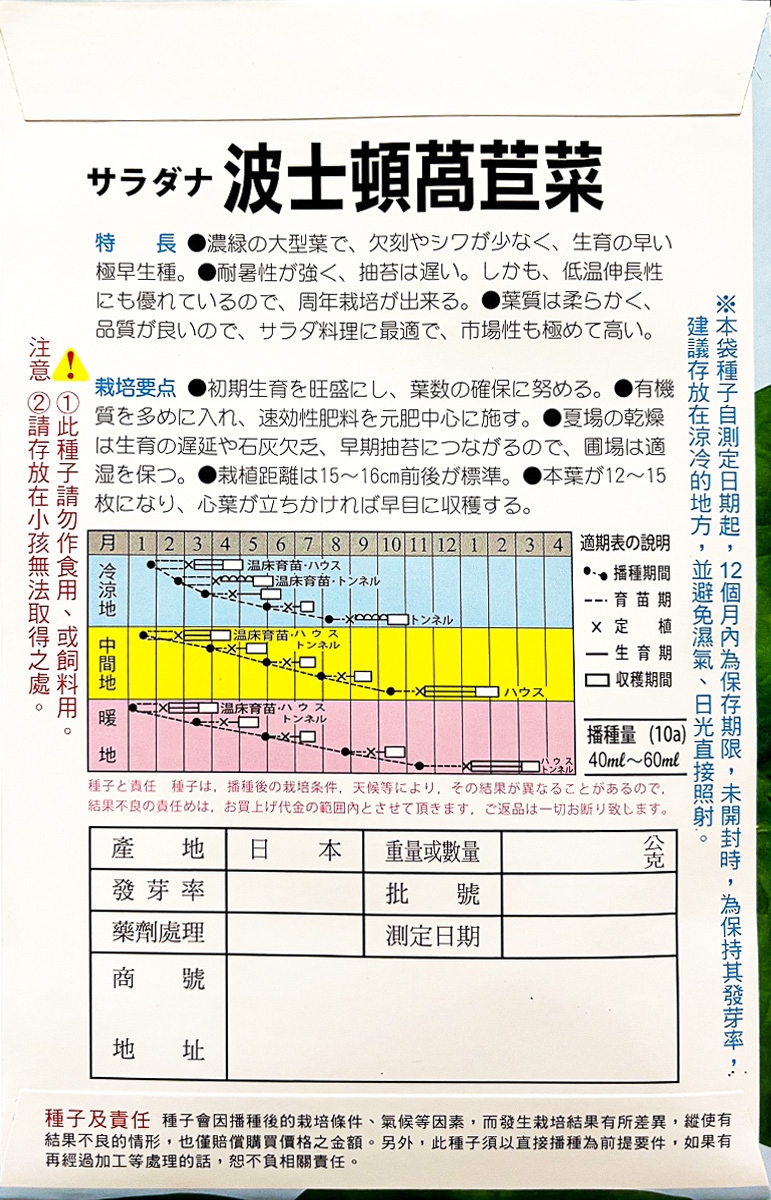【 種子為耕種使用,非食品,切勿食用!! 】
