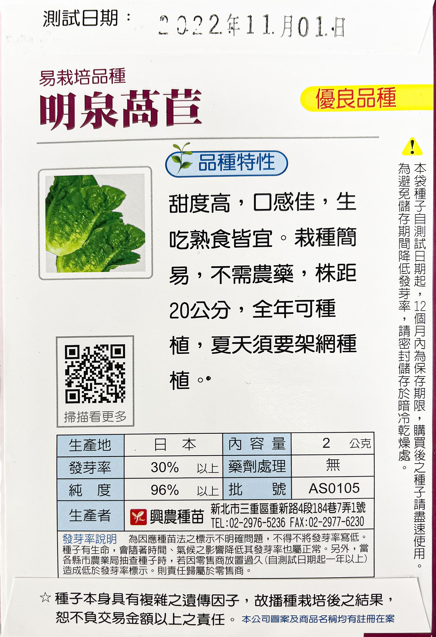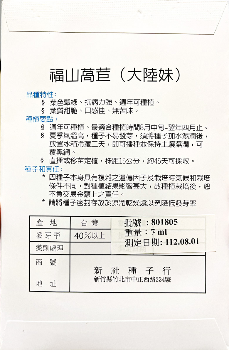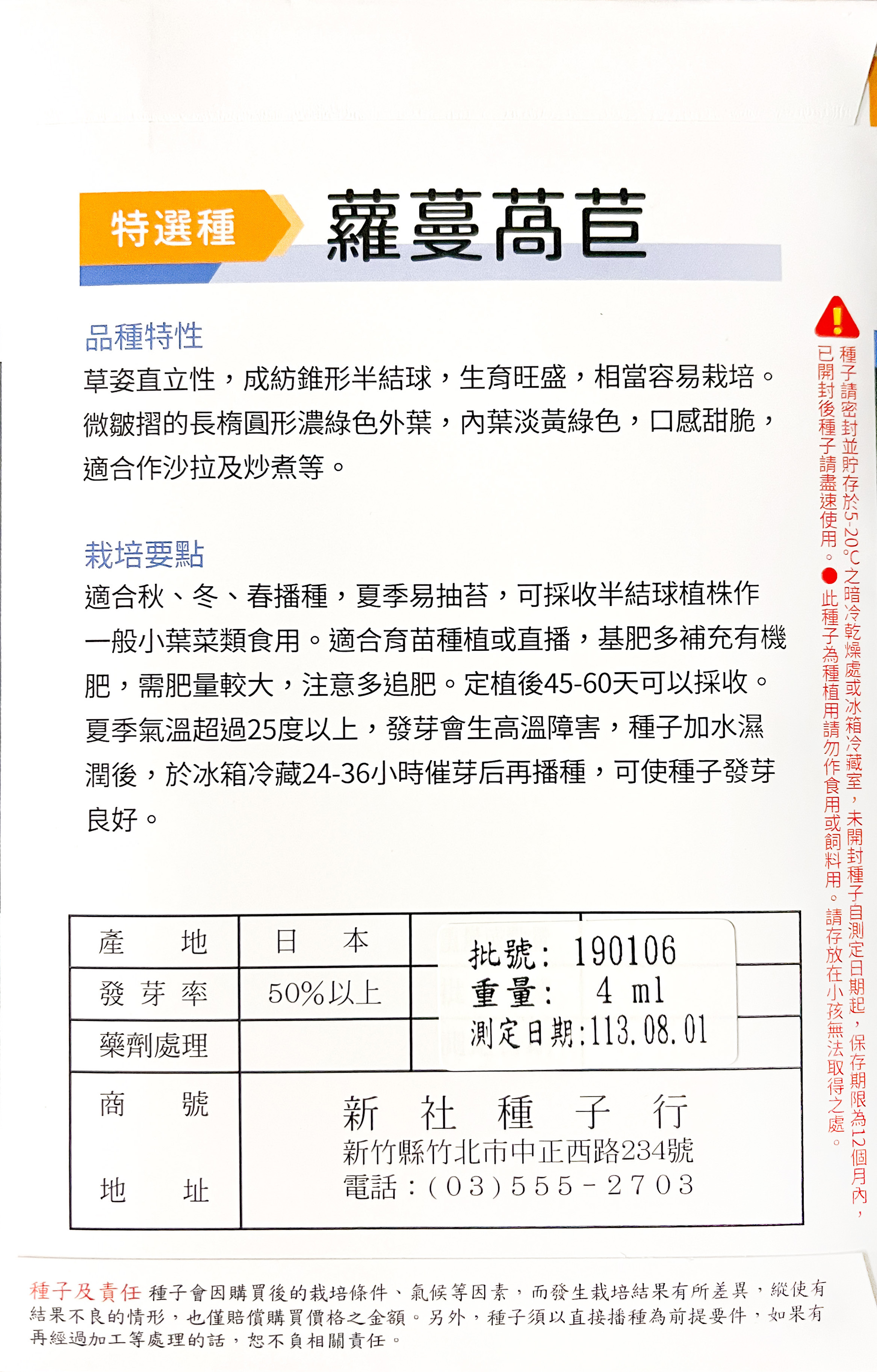 【 種子為耕種使用,非食品,切勿食用!! 】