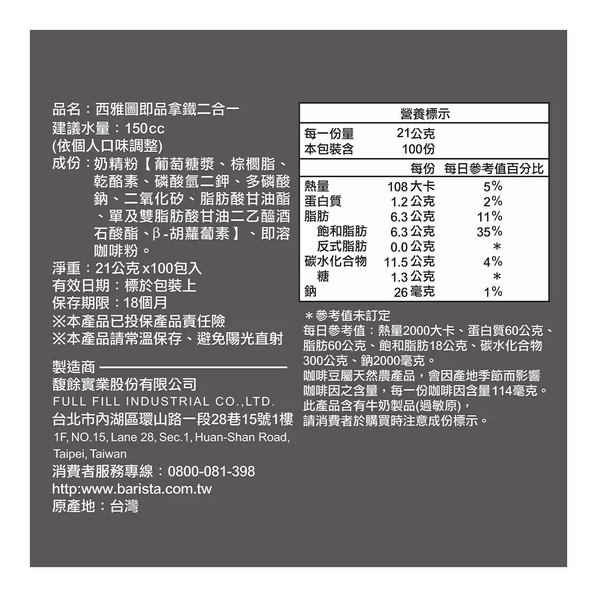 品名 : 西雅圖二合一咖啡 21公克 X 100入