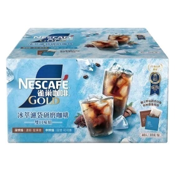 品名 : 雀巢金牌冰萃濾袋研磨咖啡 雙口味組 10公克 X 40入