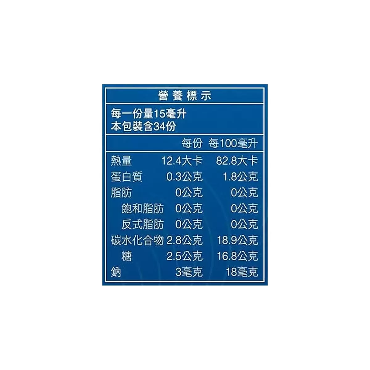 | 內容量/入數 | 15毫升 X 34入 |