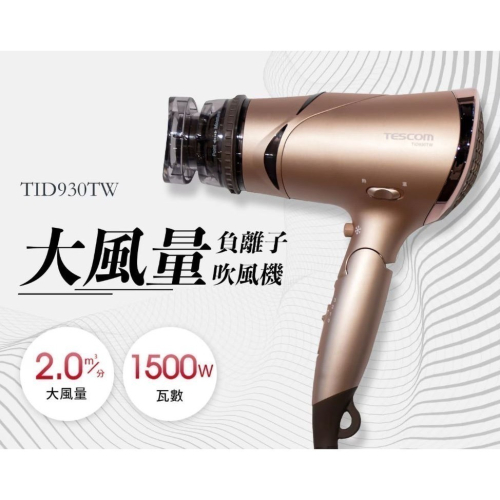 品名 : Tescom 負離子吹風機 金色 TID930TW