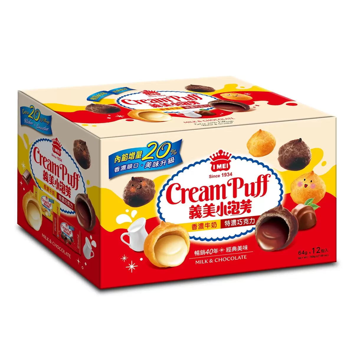 品名 : 義美 小泡芙雙口味組合包 64公克 X 12入