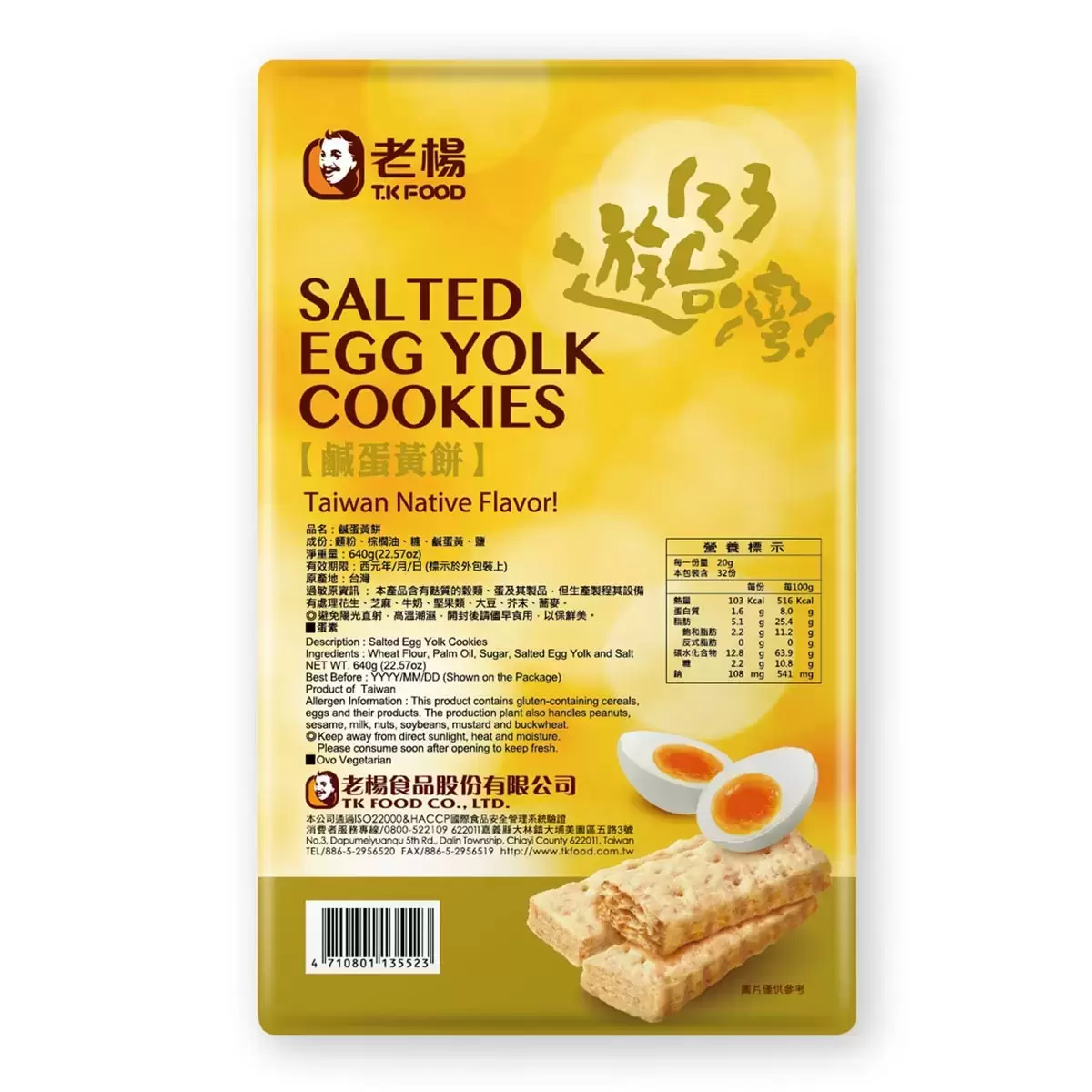 品名 : 老楊 鹹蛋黃餅 20克 X 32入 / 共640公克