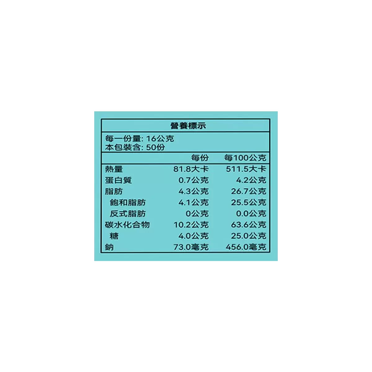 內容量/入數 : 16公克 X 50包