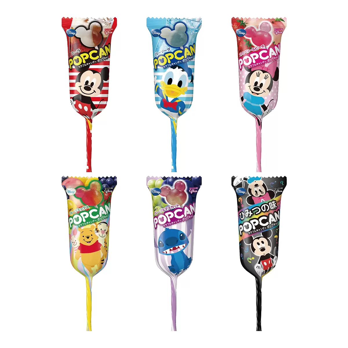 - 日本原裝進口多種口味迪士尼棒棒糖,好吃的配方搭配米奇剪影造型,一盒共有6種口味:綜合水果、葡萄、草莓桃子、可樂、蘇打與隱藏版口味,在日本廣受小朋友的喜愛!