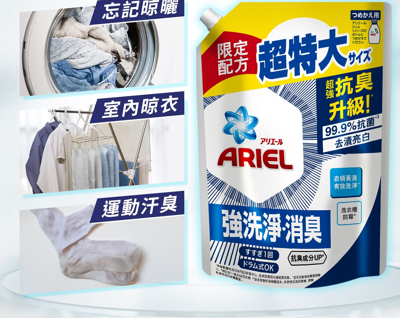 品名 : Ariel 抗臭新配方洗衣精補充包 1100公克 X 6入