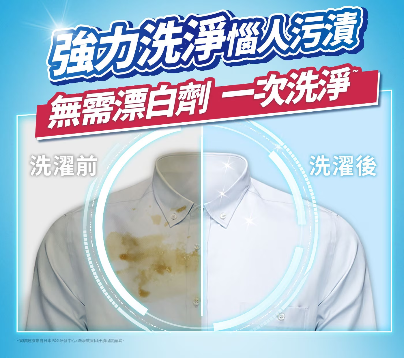 2.即使僅進行一次洗程,並搭配漂白劑或柔軟精/柔順劑一起使用,也不影響清潔效果