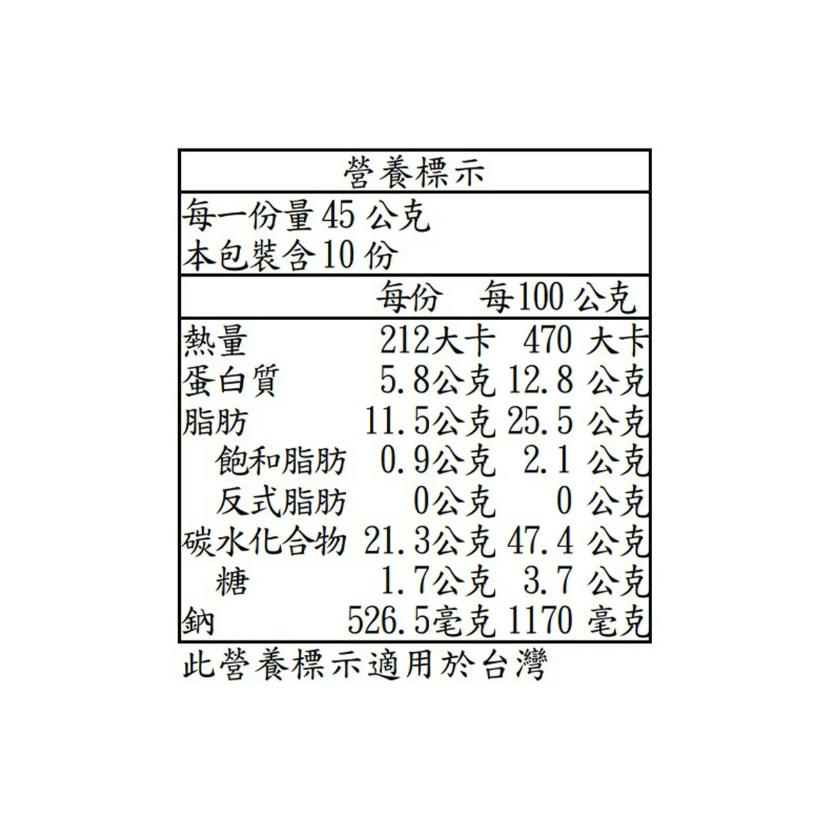 內容量/入數 : 45公克 X 10包