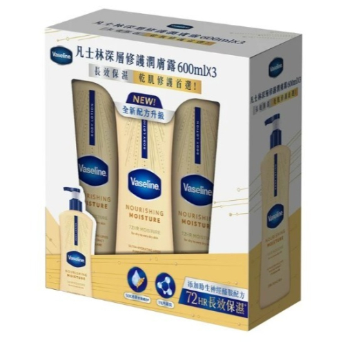 | 品名 | Vaseline 潤膚乳液 深層修護 (黃) 600毫升 X 3入 |
