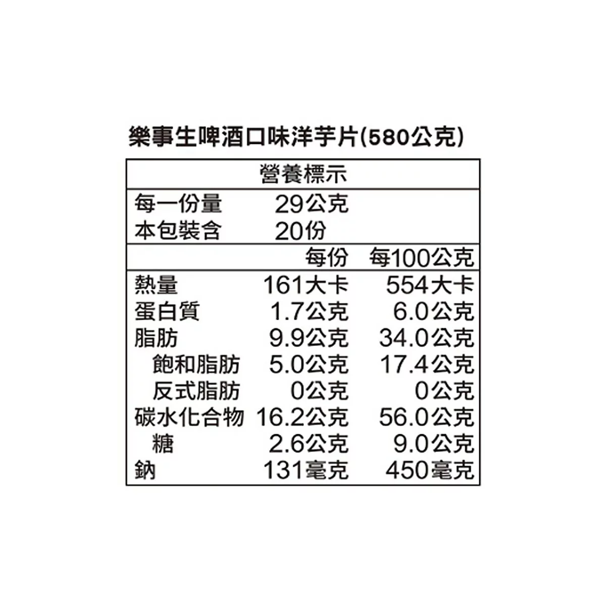 | 品名 | 樂事 生啤酒口味洋芋片 580公克 |