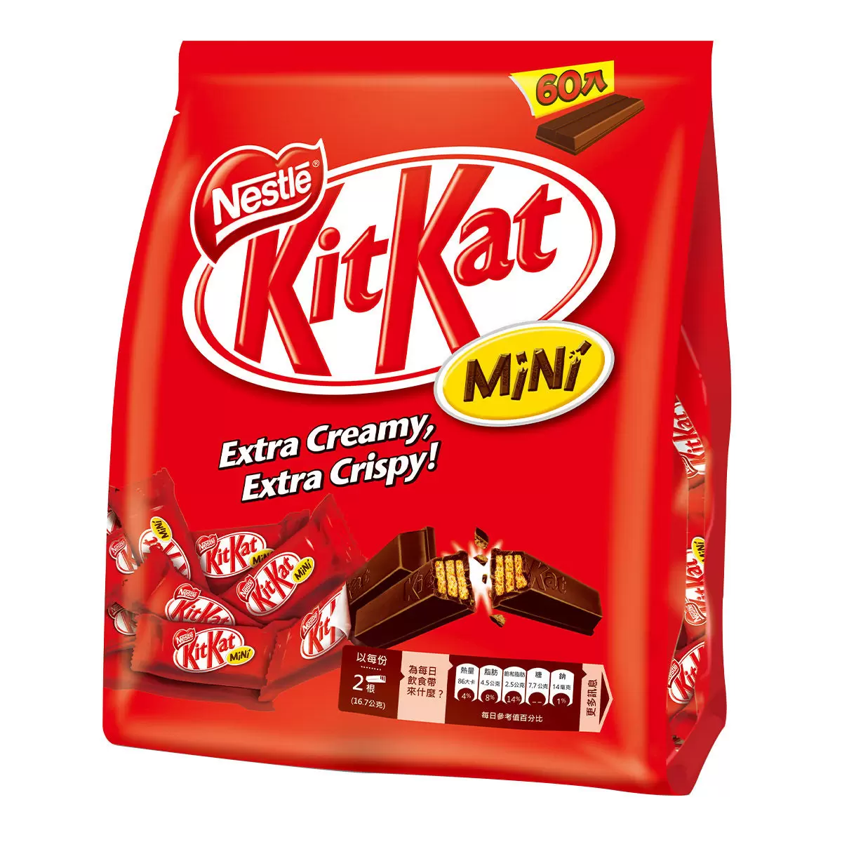 品名 : 雀巢奇巧 迷你威化巧克力家庭號 16.7公克 X 60條
