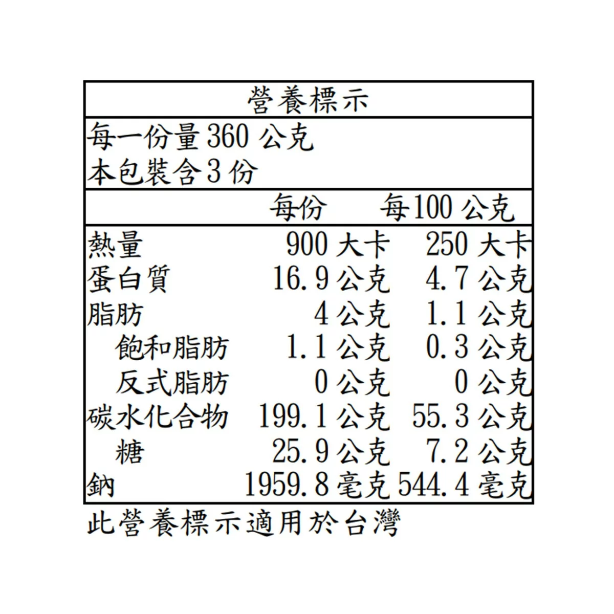 | 過敏原資訊 | 本產品含麩質穀物,大豆。本產品工廠同時生產含花生,堅果類,蕎麥,魚類,甲殼類,乳製品,芝麻,頭足類,蛋類及亞硫酸鹽類製品,食物過敏者請留意 |