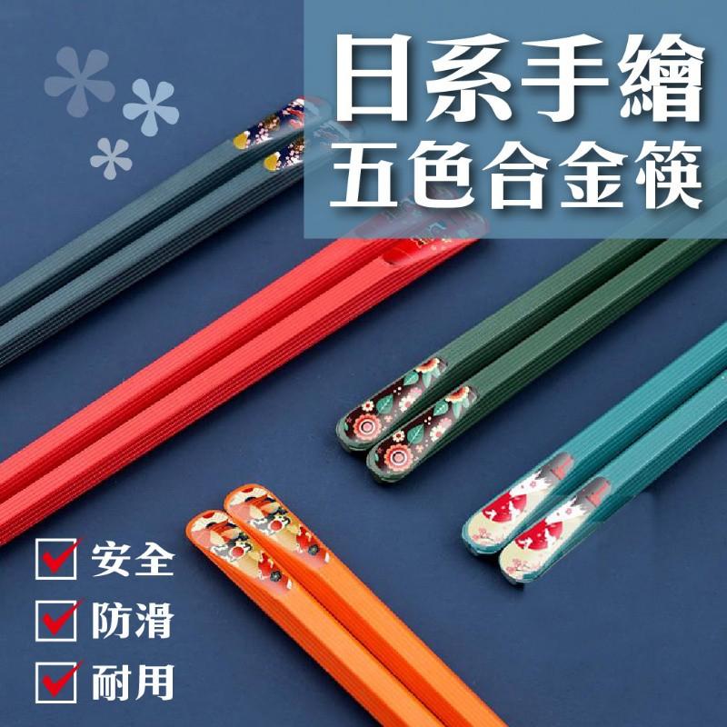 日系手繪五色合金筷,可搭配多種餐具使用😘