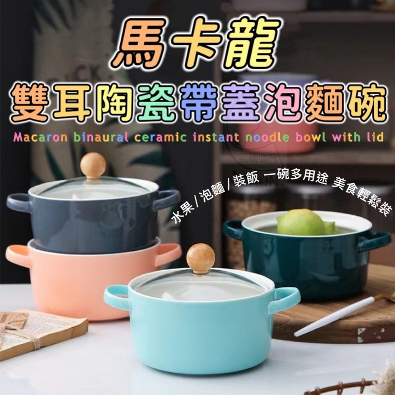 品名:馬卡龍雙耳陶瓷帶蓋泡麵碗