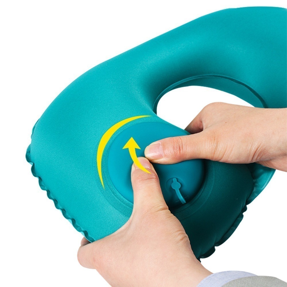 按壓式充氣U型枕 超親膚牛奶絲材質 頸枕 飛機枕 旅行頸枕 按壓式充氣 好收納 可折疊 按壓式汽車枕