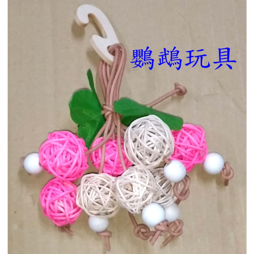 掛起來,總高度(含挂勾)約19cm,總寬度約11cm 牛皮串藤球,可愛又直徑約3cm,抓握、磨嘴、玩樂