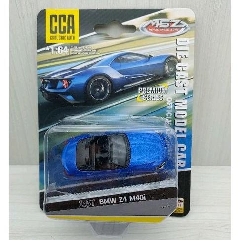 台灣現貨 全新包裝 CCA 1:57~寶馬 BMW Z4 藍色 避震效果 螺絲底盤 合金滑行車