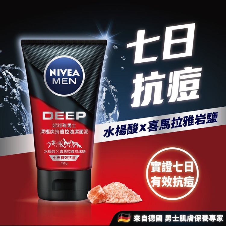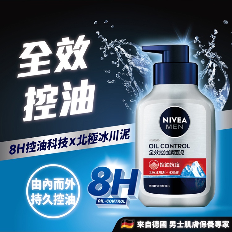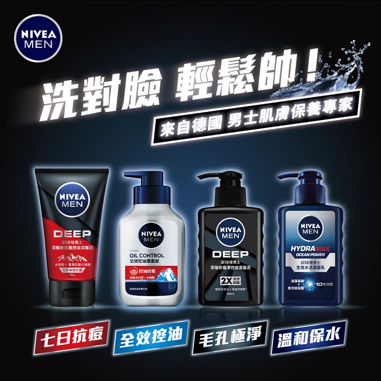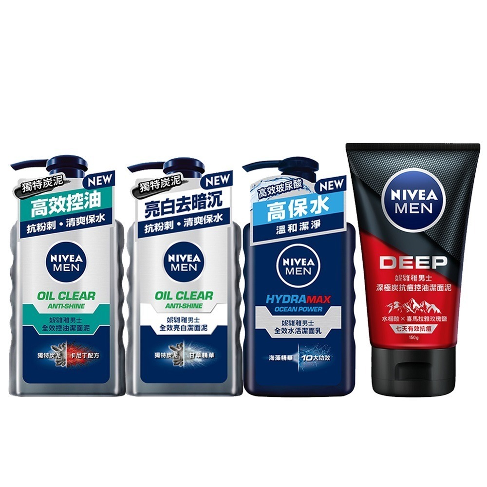 妮維雅 極淨控油/抗痘/全效水活男士洗面系列(潔面泥/洗面乳/潔面乳)【妮維雅旗艦店】