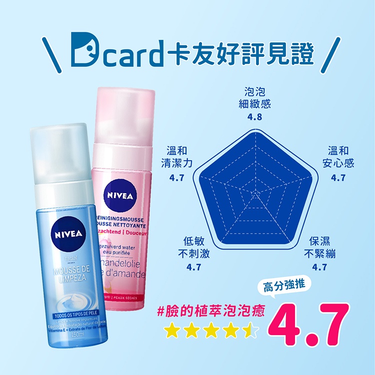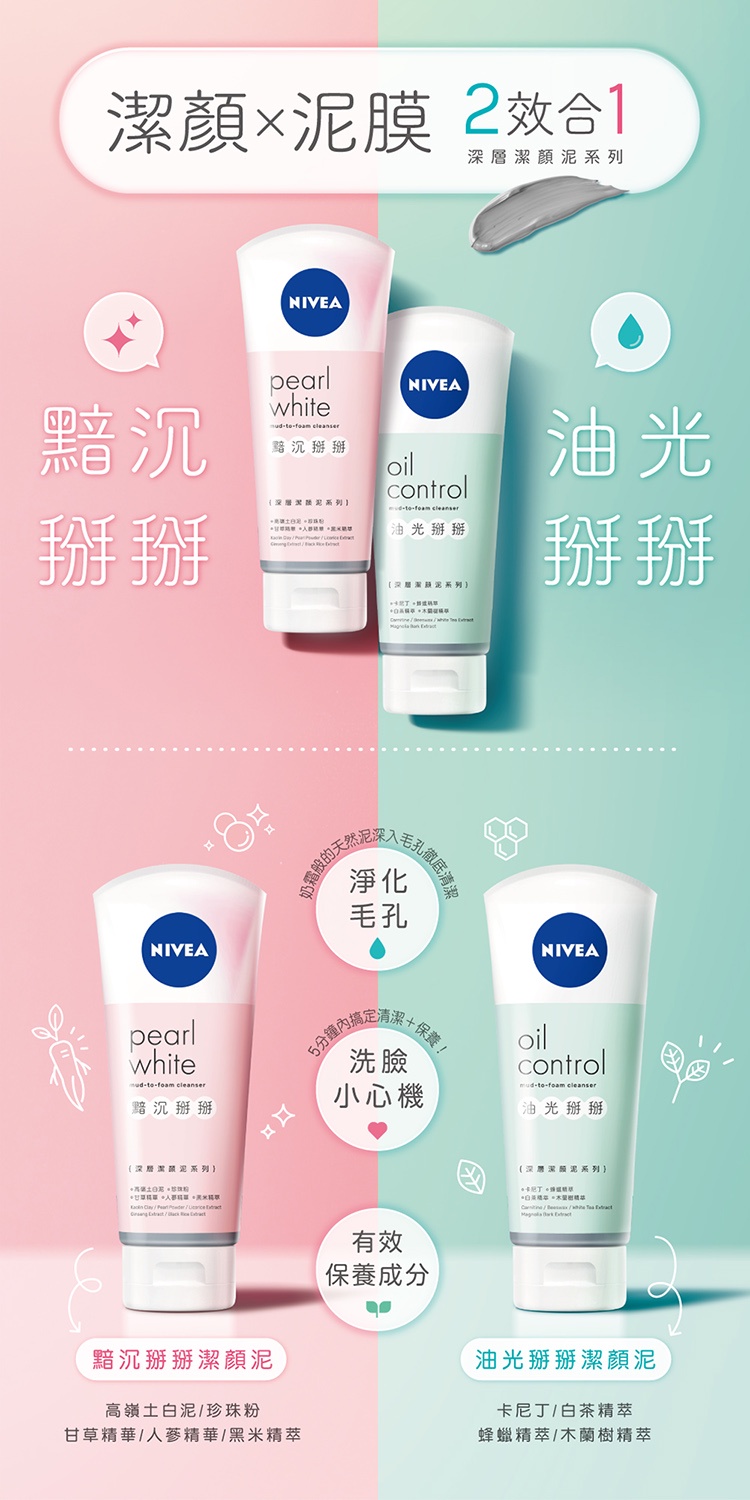 超輕感細緻泡泡: 透過妮維雅德國淨膚科技,快速深入毛孔,洗淨多餘油脂與髒汙。