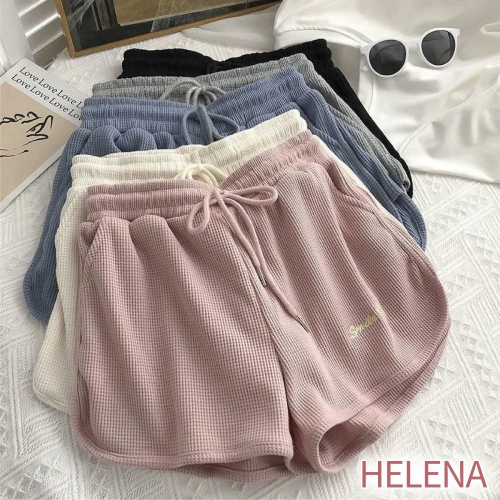 【Helena】格子褲 大尺碼居家褲 華夫格 運動短褲 睡褲 真理褲 學生薄款寬鬆闊腿休閒高腰辣妹熱褲【C1160】