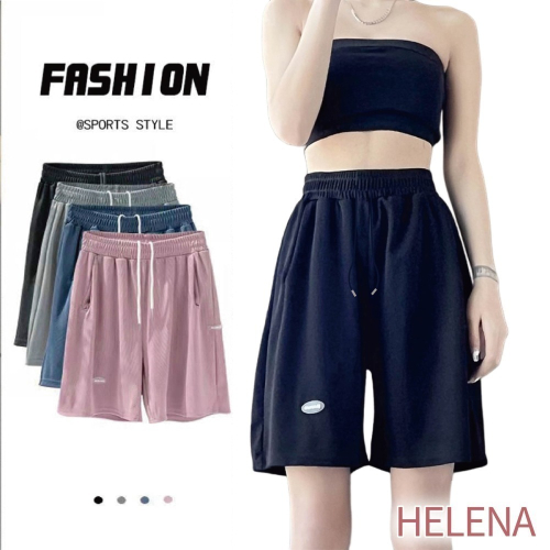 【Helena】垂順冰絲五分運動短褲 鬆緊褲頭 大碼中褲直筒顯瘦休閒闊腿薄款透氣排汗寬鬆高腰冰絲褲【C125】