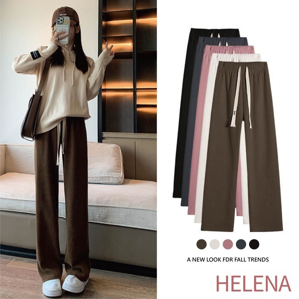 【Helena】燈芯絨落地闊腿褲 高腰直筒褲 拖地褲 秋冬韓版休閒窄版雪尼爾親膚百搭修身顯瘦長褲 褲子女【C1116】