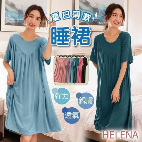 【Helena】莫代爾睡裙 連身裙 睡衣裙 短袖睡衣 孕婦裝 寬鬆休閒家居服 吊帶裙 睡衣女 【A1171】
