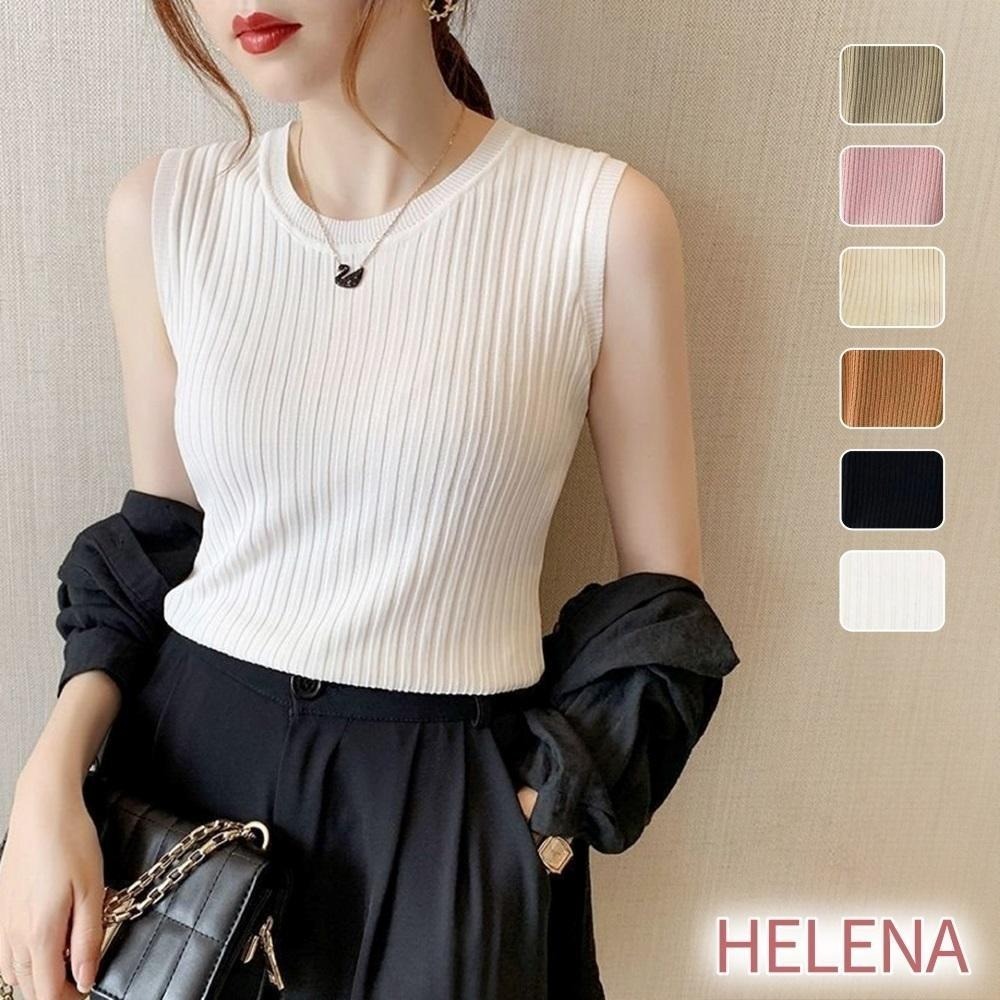 【Helena】涼感針織背心 薄款圓領無袖上衣 顯瘦坑條打底衫 冰絲無袖百搭内搭吊帶針織衫 女裝 上衣女【A1153】