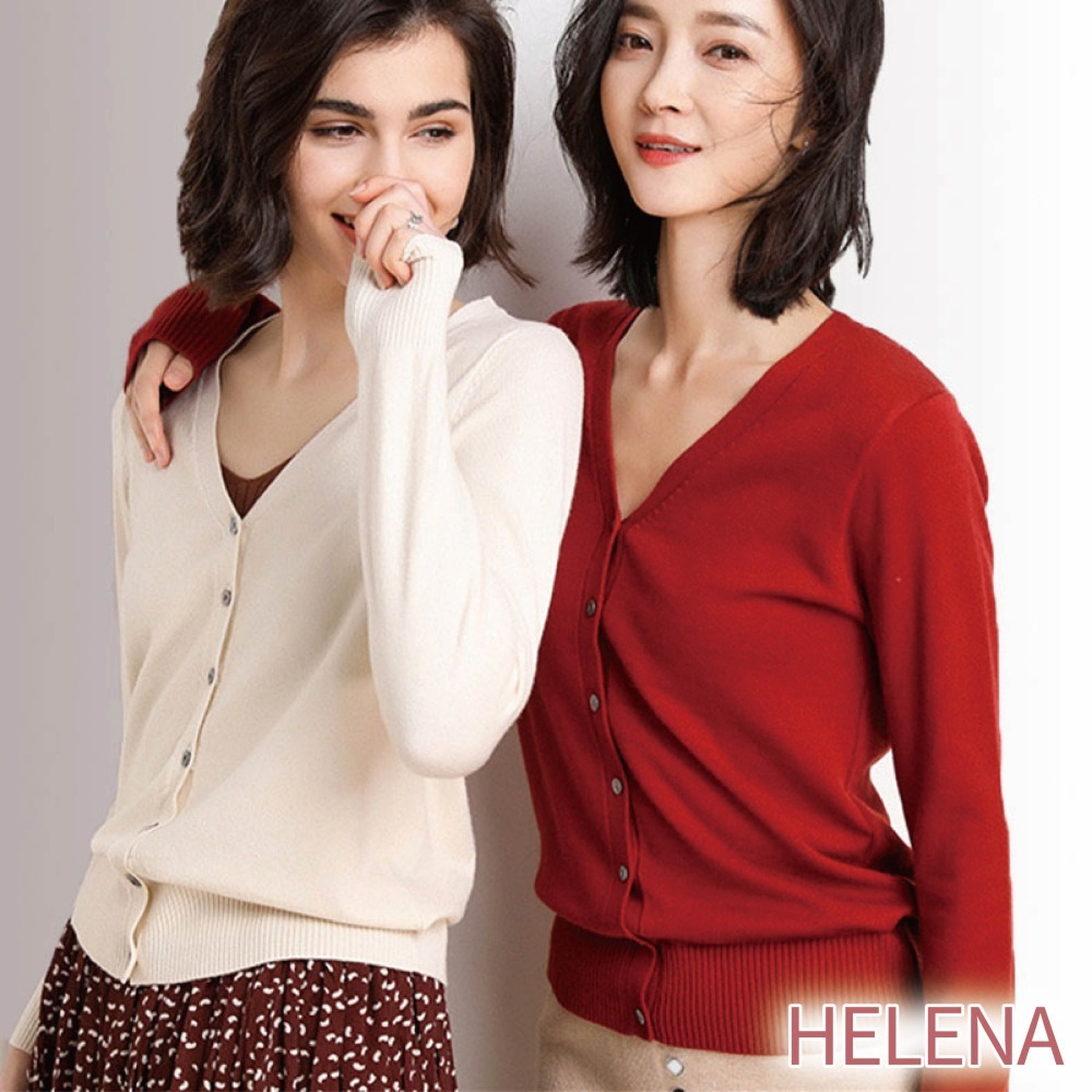 【Helena】親膚針織外套 V領毛衣外套 薄針織外套 長袖小外套 柔軟舒適百搭包心紗開衫外套 上衣女【A223】