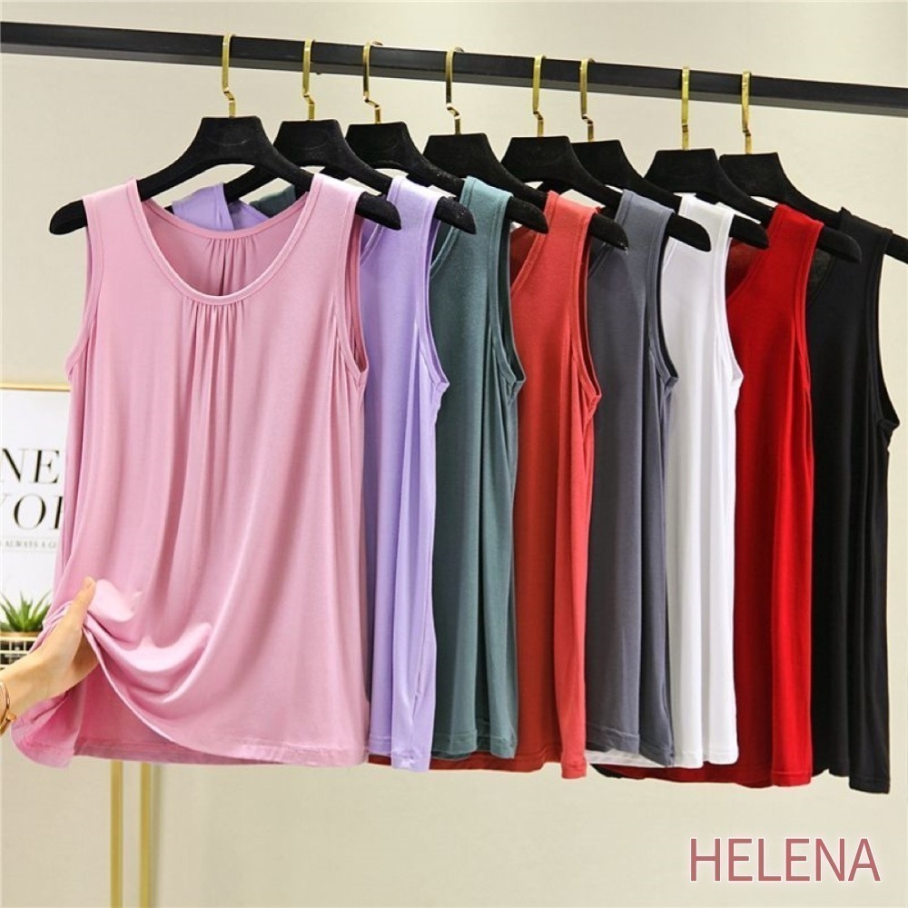 【Helena】莫代爾背心 寬肩背心 冰絲涼感無袖上衣 圓領寬鬆顯瘦大尺碼休閒吊帶婆婆媽媽打底衫 背心女【A1143】