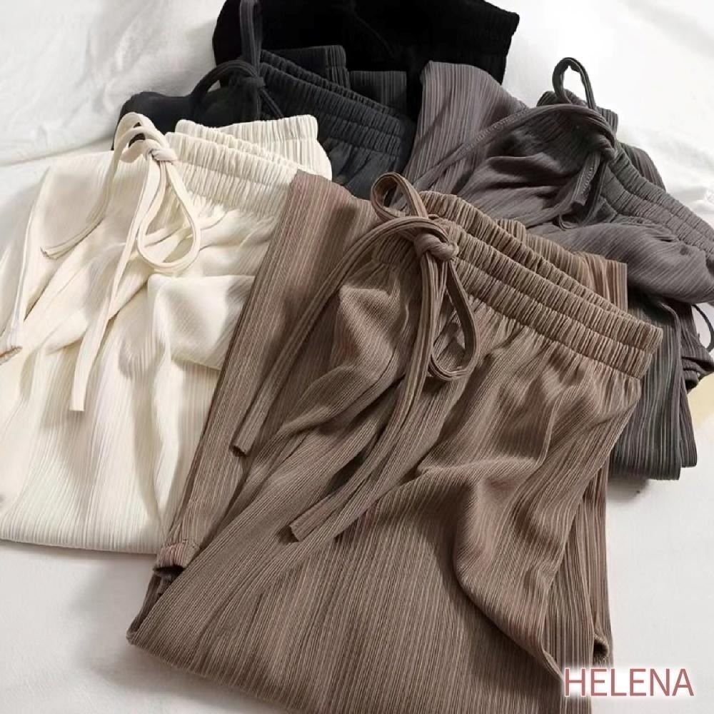 【Helena】冰絲高腰寬褲 薄款鬆緊腰闊腿褲 大尺碼垂墜感顯瘦直筒寬鬆涼感繫帶韓版休閒褲 長褲女【C1208】