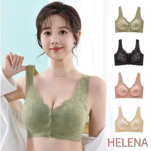 【Helena】前扣式無鋼圈內衣 蕾絲無痕內衣 鈕扣型托胸防垂胸罩 大尺碼媽媽哺乳美背內衣 女內衣【B165】