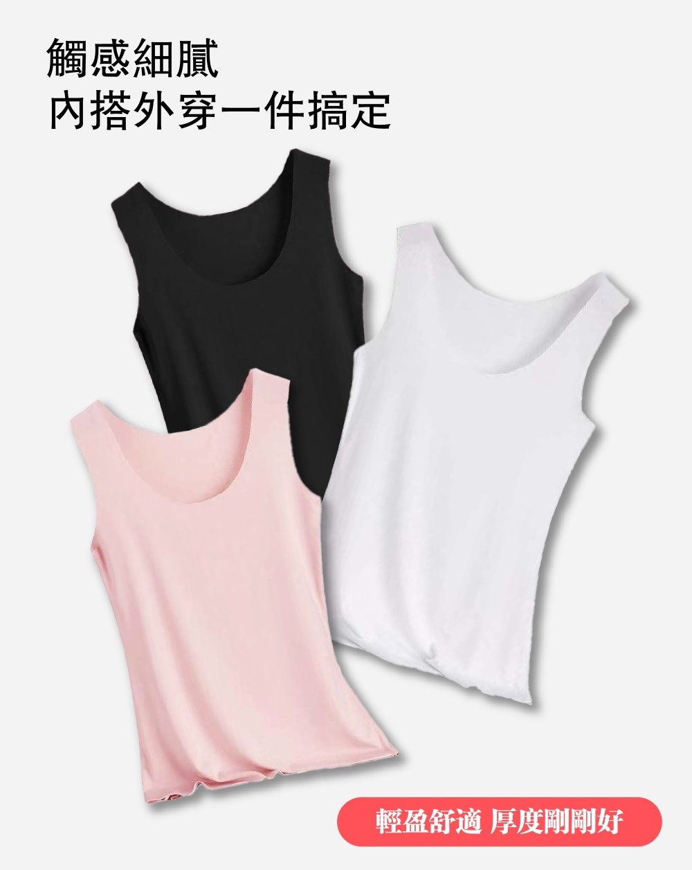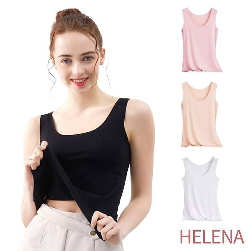 【Helena】冰絲涼感無痕背心 彈性無袖上衣 打底衫 睡衣 輕薄外穿百搭吊帶寬肩內搭顯瘦背心 女裝 【A1149】