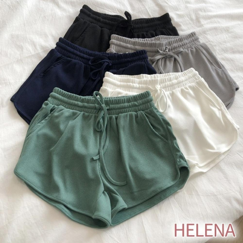 【Helena】冰絲螺紋短褲 真理褲 闊腿褲 居家褲 睡褲 熱褲 韓版鬆緊腰彈性顯瘦彈力運動短褲 褲子女【C164】