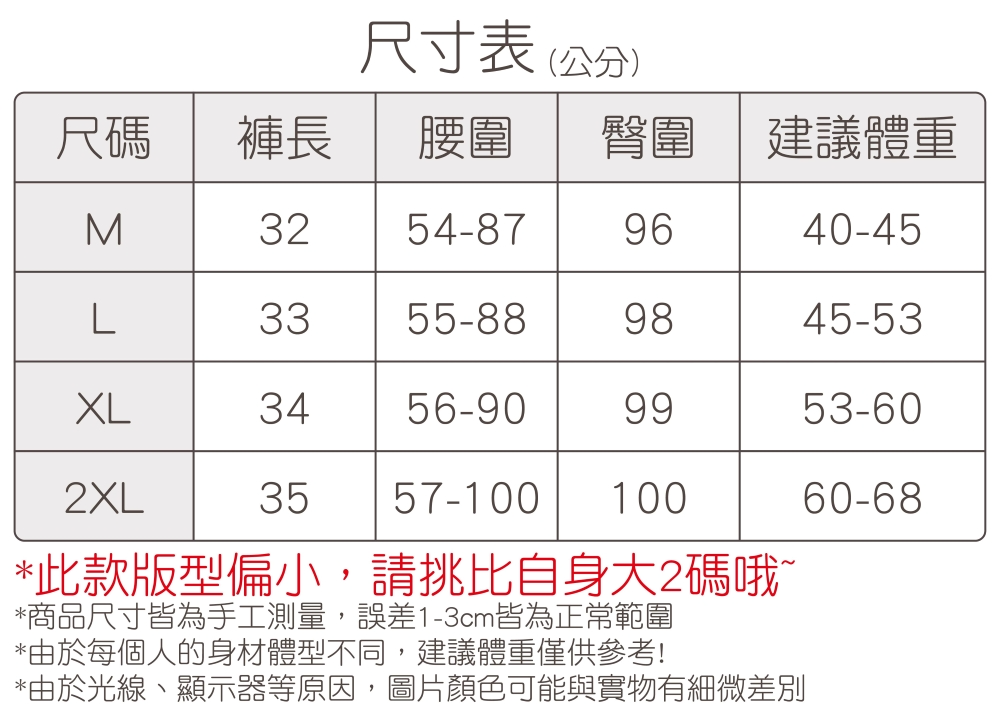 • XL(版型偏小,請選大2碼的尺寸)