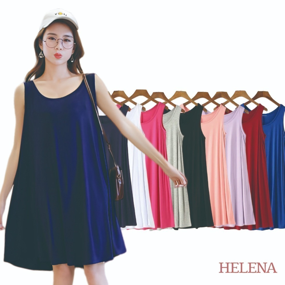 【Helena】莫代爾連身裙 無袖背心裙 孕婦裝 A字裙 中長款洋裝 寬鬆大尺碼家居打底裙 睡裙 孕婦裝【A1146】