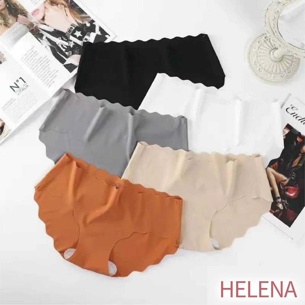 【Helena】波浪透氣冰絲無痕內褲 三角內褲 素色韓版超涼感一片式低腰內褲 純棉褲襠 內褲女【B155】