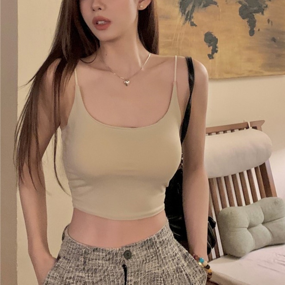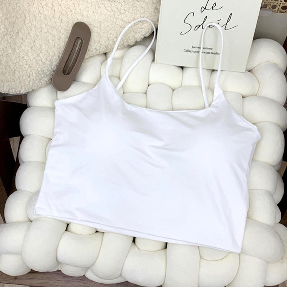 【7-ELEVEN門市團購】冰絲一體式帶胸墊美背背心 透氣免穿內衣小可愛 親膚細肩帶胸墊背心 涼感舒適內搭【B182】