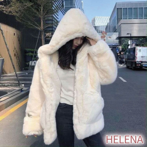 【Helena】韓版毛毛絨皮草外套女 中長款 拉鍊 仿兔毛 連帽大衣寬鬆 刷毛大外套 刷毛連帽外套【A2154】